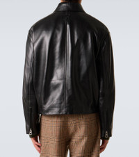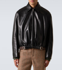 Founded in 1846 as a leathermaking company, Loewe maintains a commitment to art and craft with the utmost quality. This jacket is expertly crafted from smooth lambskin leather and features a pointed collar and buckle detailing at the waistline. Product Details - Material: 100% lamb leather - Care instructions: specialist clean - Made in Italy - Designer color name: Black - Item color: black - Insert: 100% calf leather - Lining: 100% viscose - Pocket lining: 100% cotton - Closure: zipped front - Pockets: side slit pockets - Includes: dust bag - Item number: P01089558 Size & Fit - True to size - Dropped shoulders - Designed for a loose fit - Adjustable hem - Elasticated hem - Non-stretchy fabric - Slightly cropped - The model in the picture is 185cm-6'1" and wearing a size IT 50