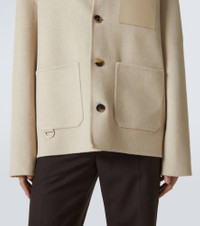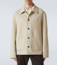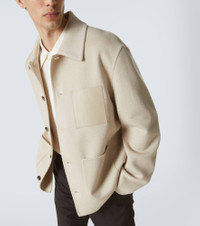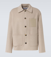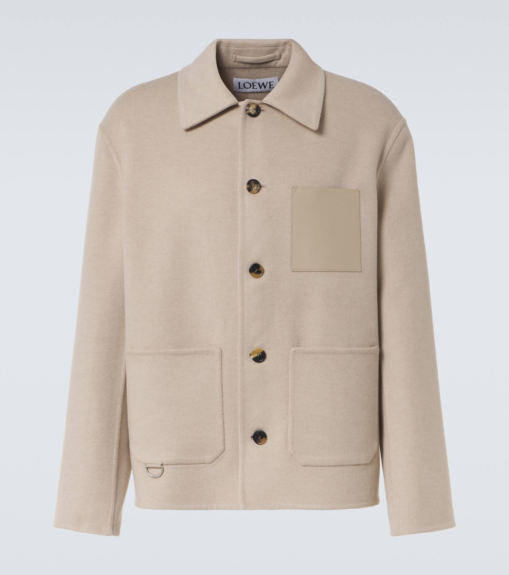 Loewe draws inspiration from workwear silhouettes for this jacket. Made in Italy from a wool and cashmere blend, the piece comes with a tonal leather patch pocket on the chest. Product Details - Material: 90% wool, 10% cashmere - Care instructions: dry clean - Made in Italy - Designer color name: Light Beige Melange - Closure: button-down - Pockets: patch pockets - Item number: P01006609 Size & Fit - True to size - For a closer fit, we recommend taking one size down - Dropped shoulders - Designed for a loose fit - Non-stretchy fabric - Falls below the hip - Height of model is 185cm-73" and wears a size IT 50