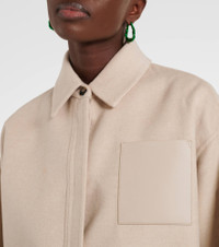 Product Details - Material: 90% wool, 10% cashmere - Care instructions: dry clean - Made in Italy - Designer color name: Light Beige Melange - Closure: snap-buttoned front - Pockets: side slit pockets - Trim: 100% leather - Pocket lining: 100% cotton - Material II: 100% viscose - Buttoned cuffs - Item number: P01000841 Size & Fit - True to size - Dropped shoulders - Oversized - Non-stretchy fabric - Falls below the hip - The model seen in the picture is 178cm-5'10" and wearing a size FR 36