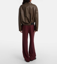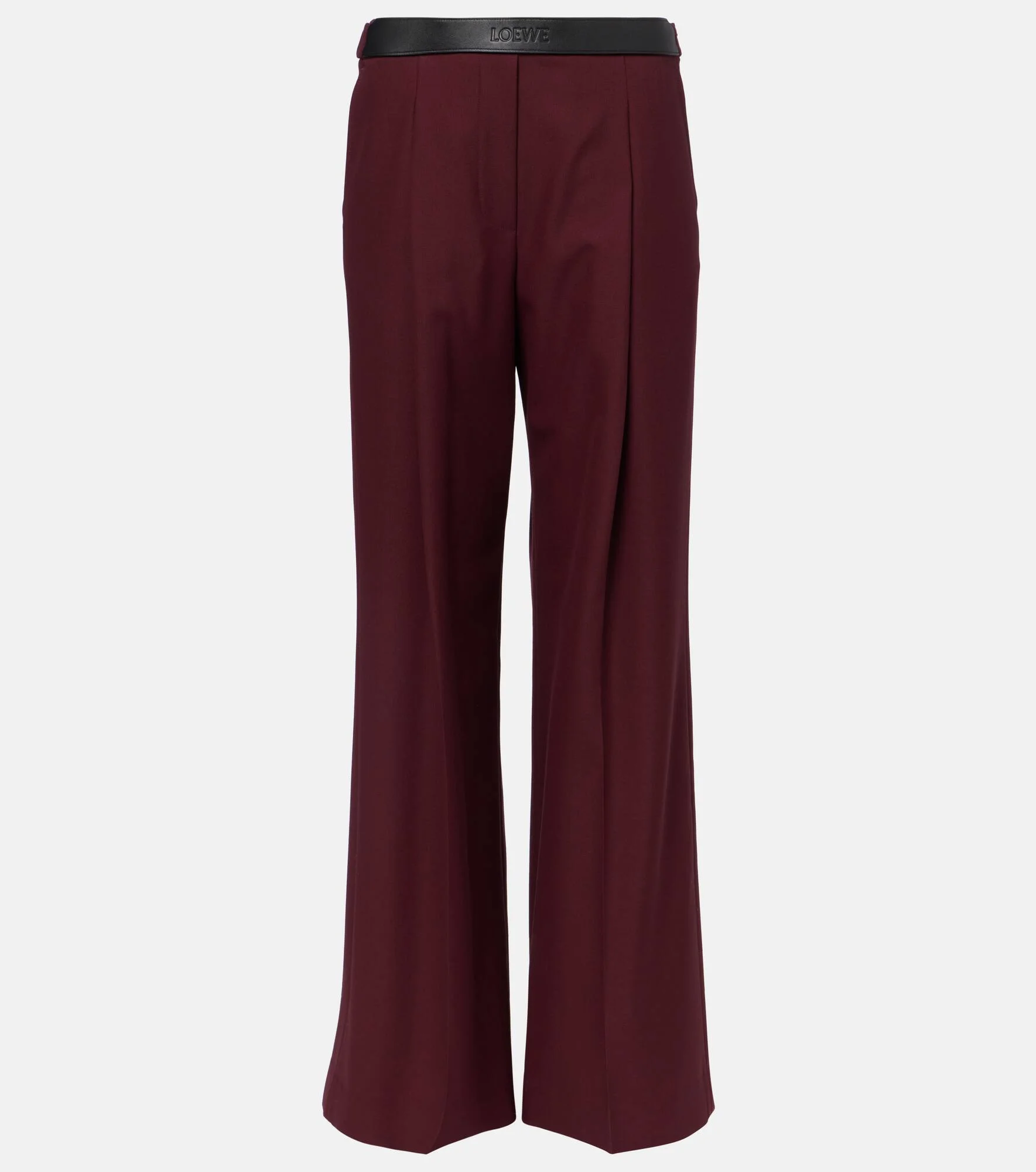 Founded in 1846 as a leathermaking company, Loewe maintains a commitment to art and craft of the utmost quality. These wool pants are tailored to a wide-leg silhouette with refined pleats and a leather waistband. Product Details - Material: 100% wool - Care instructions: dry clean - Made in Italy - Color: burgundy - Designer color name: Burgundy - Item color: burgundy - Details: 100% calf leather - Contains non-textile parts of animal origin - Closure: invisible zipper - Elasticated waistband - Pockets: side slit pockets, back pockets - Item number: P01118242 Size & Fit - True to size - Elasticated waist - Non-stretchy fabric - Wide-leg - High-waisted - The model seen in the picture is 178cm-5'10" and wearing a size FR 34