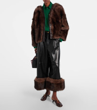 Count on Loewe for expertly crafted designs in refined materials, like this jacket. Made from smooth lamb leather, the style features wide-leg silhouette and plush ankle cuffs. Product Details - Material: 100% lamb leather - Care instructions: specialist clean - Made in Spain - Designer color name: Black - Item color: black - Lining: 90% cotton, 10% polyester - Lining II: 65% viscose, 35% polyester - Pocket lining: 100% cotton - Closure: zip, hook, and button fastening - Pockets: slant pockets, back pocket - Belt loops - Single pleat - Includes: dust bag - Item number: P01105000 Size & Fit - True to size - Non-stretchy fabric - Wide-leg - High-waisted - The model seen in the picture is 178cm-5'10" and wearing a size FR 34