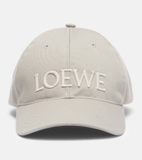 Crafted from cotton, this baseball cap from Loewe offers a classic silhouette with the brand's contrasting white logo on the front. The design is complete with a debossed leather patch at the back for a charming touch. Product Details - Material: 100% cotton - Care instructions: do not wash - Made in Italy - Designer color name: Lady Grey - Item color: gray - Lining: 100% cotton - Details: 100% calf leather - Contains non-textile parts of animal origin - Item number: P01065697 Size & Fit - Adjustable size - Circumference size M 56cm-22" - Length of visor 7cm-3"
