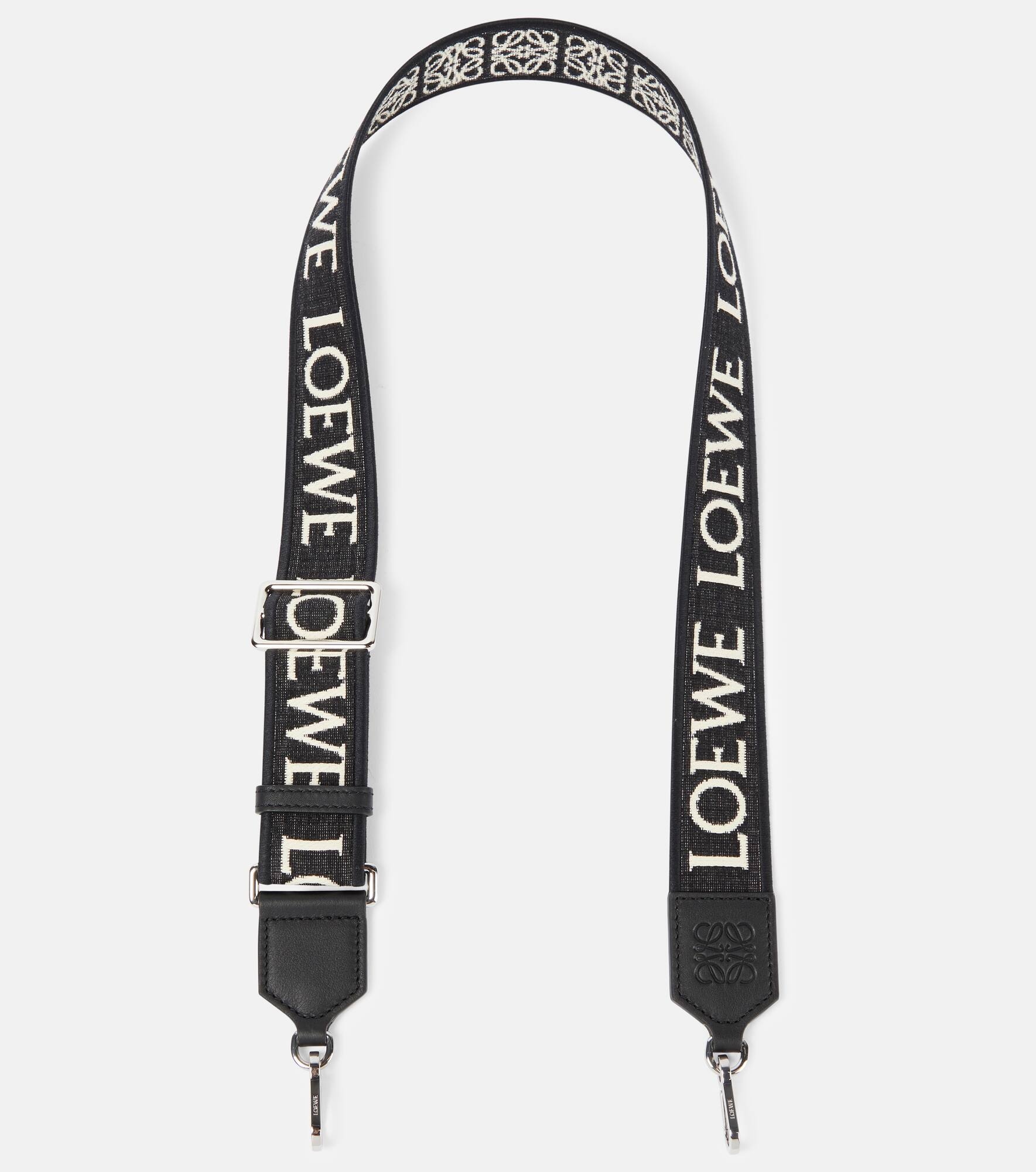 Product Details - Material: 100% jacquard - Care instructions: do not wash - Made in Spain - Designer color name: Black - Trim: 100% leather - Includes: dust bag, presentation box - Item number: P00912622 Size & Fit - Adjustable length - Width 4cm-1.5" - Min. strap length 65cm-25.5" - Max. strap length 100cm-39.5"