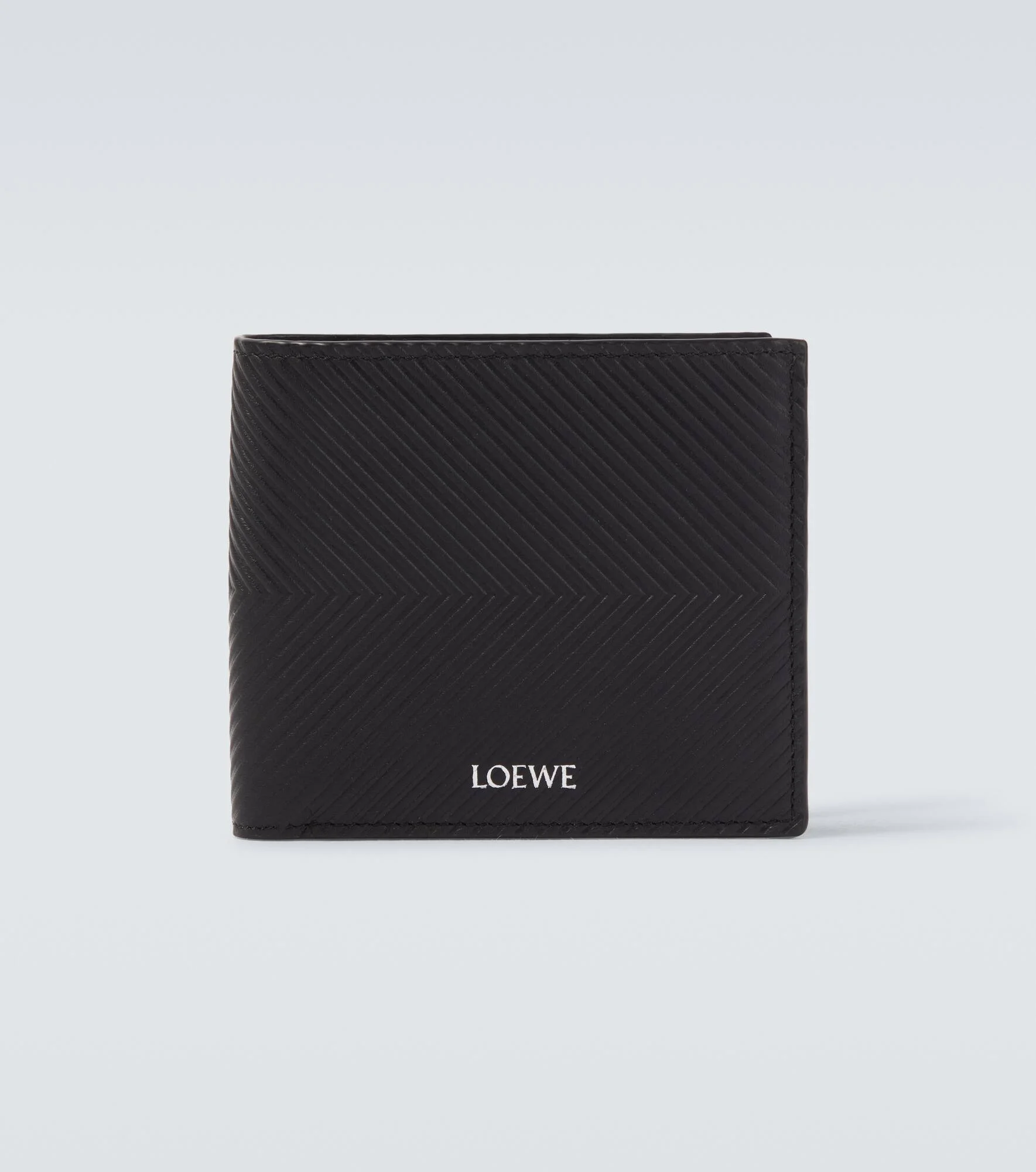 Show your brand love with timeless pieces like this grooved leather bifold wallet, featuring a silver logo print. All of Loewe's leather goods are handcrafted in Spain, reflecting the house's centuries-long expertise and artisanal methods. Product Details - Material: calf leather - Lining: leather - Made in Spain - Designer color name: Black - Item color: black - Internal details: Card slots, bill slots - Includes: dust bag, box - Item number: P01123380 Size & Fit - Height 9.5cm-3.5" - Width 10.5cm-4" - Depth 1.5cm-0.5"