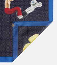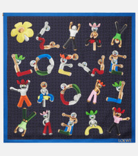 Founded in 1846 as a leathermaking company, Loewe preserves its intellectual yet playful approach to fashion, evident in this silk twill scarf. On a blue base, the style features a cartoonized take on the brand's logo print. Product Details - Material: 100% silk - Care instructions: dry clean - Made in Italy - Designer color name: Navy Blue/Multicolor - Item color: blue, multicolor - Item number: P01103902 Size & Fit - Length 90cm-35.5" - Width 90cm-35.5"