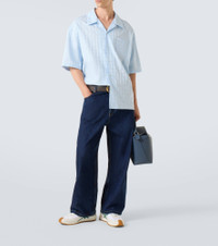 Founded in 1846, Loewe maintains a commitment to art and craft with the utmost quality. These barrel-leg jeans are designed with a mid-rise waistline and finished with a logo-embossed leather patch at the back. Product Details - Material: 100% cotton - Care instructions: machine wash at 30 degrees - Made in Italy - Designer color name: Raw Denim - Item color: blue - Pockets: five pockets - Closure: button fastening - Details: 100% calf leather - Pocket lining: 100% cotton - Contains non-textile parts of animal origin - Belt loops - Item number: P01063192 Size & Fit - True to size - Non-stretchy fabric - Wide-leg - Mid-rise - Height of model is 189cm-74.5" and wears a size 50