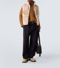 Loewe's designs reflect the house's centuries-long expertise and artisanal methods. Crafted in Italy from pure cotton twill, these pants are cut to a mid-rise, wide-leg silhouette and feature leather details. Product Details - Material: 100% cotton - Care instructions: dry clean - Made in Italy - Designer color name: Dark Navy Blue - Item color: blue - Pocket lining: 100% cotton - Details: 100% calf leather - Contains non-textile parts of animal origin - Closure: zipper fly, button and hook fastenings - Pockets: side slit pockets, back pocket, buttoned pocket - Item number: P01123335 Size & Fit - True to size - Non-stretchy fabric - Wide-leg - High-waisted - Height of model is 189cm-74.5" and wears a size 50