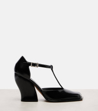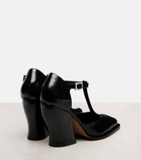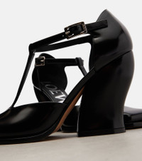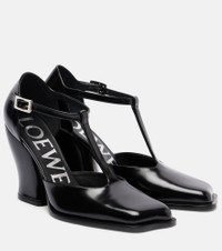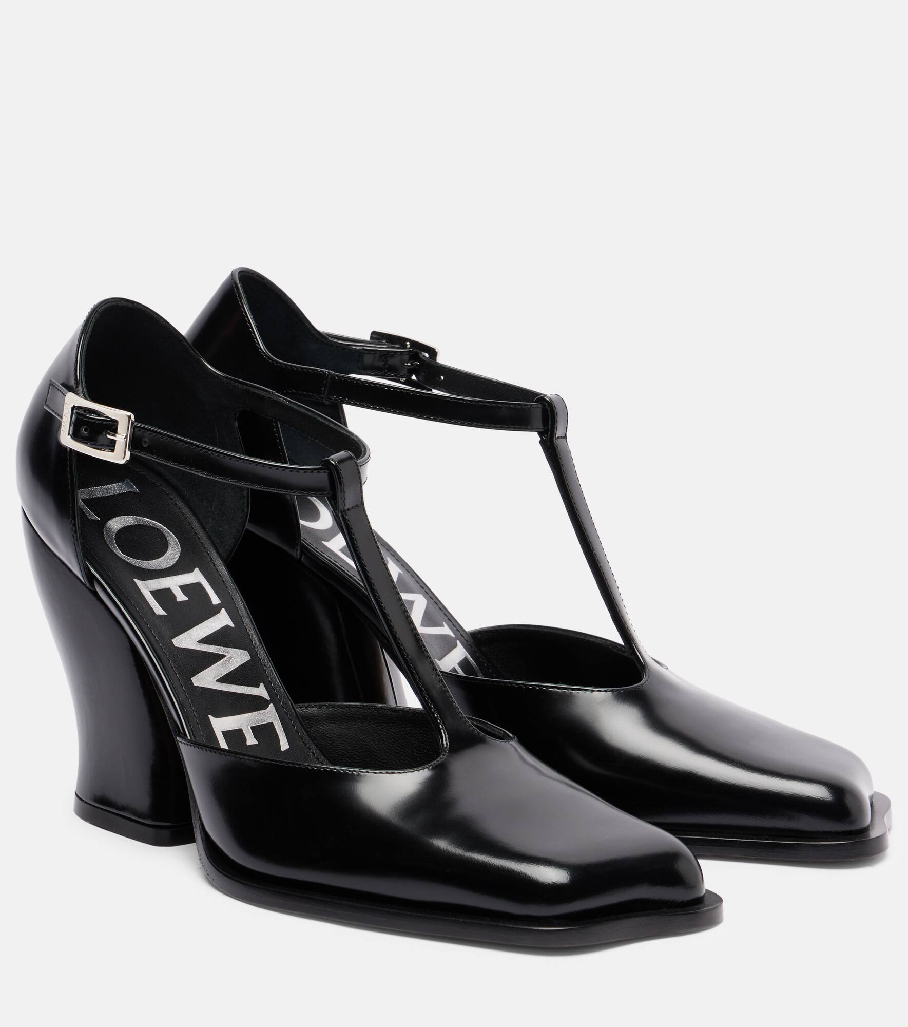Crafted in Italy from leather, the Onda T-strap pumps by Loewe are a sophisticated wardrobe staple that reflects the brand’s dedication to exceptional craftsmanship. This pair is defined by 90mm heels and a square toes shape. Product Details - Upper: calf leather - Lining: leather - Sole: leather insole and sole - Toe shape: square toe - Made in Italy - Includes: shoe box, dust bag - Designer color name: Black - Item color: black - Closure: buckle-fastening ankle strap - Item number: P01103878 Size & Fit - True to size - Half sizes please take the next size down - European sizes - 9cm-3.5" heel (size EU 38)