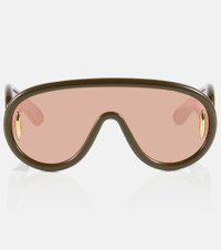 Keep your eyes on the prize with these oversized sunglasses from Loewe. Made in Italy from acetate, this aviator style features thick frames with the brand's logo on the sides. Product Details - Frame color: dark green - Frame material: acetate - Lens color: pink - comes with cleaning cloth - The color of the case may vary, comes in a case - Lens filter category 3 - Made in Italy - Item number: P00802255 Size & Fit - Lens width: 140mm-5.5" - Earpiece length: 145mm-5.7"