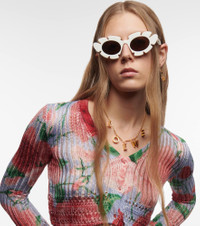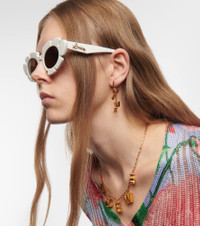 These sunglasses from Loewe Paula's Ibiza prove that happiness might arrive in a case. The cat-eye frames are made from transparent acetate and shaped to resemble the petals of a flower. Product Details - Frame color: white - Frame material: acetate - Lens color: brown - Lens type: tinted lenses - comes with cleaning cloth - The color of the case may vary - Lens filter category 3 - Made in Italy - Item number: P00802264 Size & Fit - Lens width: 47mm-1.85" - Bridge size: 20mm-0.8" - Earpiece length: 140mm-5.5"