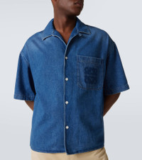 The Anagram logo was designed by the Spanish artist Vicente Vela as a quadruple-L insignia that now lends instant recognition to any Loewe piece. It's embroidered on this denim bowling shirt – part of the Paula's Ibiza line. Product Details - Material: 100% cotton - Care instructions: machine wash at 30 degrees - Made in Italy - Designer color name: Light Blue - Item color: blue - Embroidery: 100% polyester - Closure: button-down - Item number: P01048267 Size & Fit - Fits large to size - we recommend trying one size smaller - Dropped shoulders - Designed for a loose fit - Non-stretchy fabric - Falls below the hip - The model in the picture is 185cm-6'1" and wearing a size EU 40