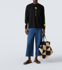 Founded in 1846 as a leathermaking company, Loewe maintains a commitment to art and craft with the utmost quality. Made from soft cotton jersey, this long-sleeved T-shirt comes with a charming flower print. Product Details - Material: 100% cotton - Care instructions: machine wash at 30 degrees - Made in Portugal - Designer color name: Black - Item color: black - Item number: P01048276 Size & Fit - True to size - Dropped shoulders - Designed for a loose fit - Slightly stretchy fabric - Falls below the hip - The model seen in the picture is 178cm-5'10" and wearing a size L