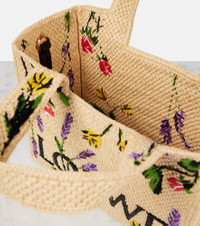 Keep the Loewe Font tote bag by your side during warm-weather getaways. Expertly made from raffia, the Small design is completed with embroidered floral motifs, logo lettering, and a leather strap for versatile wear. This piece is part of a continuing collaboration that combines Loewe's artisan legacy with the carefree spirit of Paula's Ibiza. Product Details - Material: raffia - Lining: fabric - Made in Madagascar - Designer color name: Natural - Item color: beige - Top handles, Detachable shoulder strap - Hardware color: gold - Item number: P01056201 Size & Fit - Width 23cm-9" - Max. height 19cm-7.5" - Depth 10cm-4" - Length of handles 29cm-11.5" - Adjustable shoulder strap - Min. length shoulder strap 100cm-39.5" - Max. length shoulder strap 120cm-47"