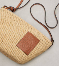 The Pochette shoulder bag from LOEWE Paula's Ibiza is a direct route to island style – no matter where you spend your summer. Crafted from woven raffia with brown leather accents, it has a trapezoid silhouette with recessed zip-top closure to keep your treasures safe. Make it your companion for trips to the local farmer's market. - trim: calf leather - internal details: fabric lining - colour of fastening: silver - zipped top - comes with dust bag - Designer colour name: Natural/Tan - material: 100% raffia - leather shoulder strap