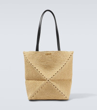Part of Loewe's Paula's Ibiza line, the Puzzle Fold Medium raffia tote bag makes the perfect bag for travel or beach days. Its lightweight geometric structure folds flat for ultimate convenience, finished with leather straps and a gold logo. Product Details - Material: raffia - Lining: unlined - Made in Spain - Designer color name: Natural - Item color: yellow - Trim: leather - Hardware color: gold - Item number: P01048289 Size & Fit - Height 31cm-12" - Max. width 38cm-15" - Max. depth 14cm-5.5" - Length of handles 57cm-22.5"