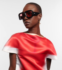Look to Loewe for statement eyewear, like these chunky black sunglasses from the label's Paula's Ibiza collection. Made in Italy from glossy acetate, this square pair has thick-rimmed frames and rose-tinted lenses. Please note that the color of the case may vary. Product Details - Frame color: black - Frame material: acetate - Lens color: rosy pink - comes with cleaning cloth - comes in a logo-embossed case - Lens filter category 1 - Made in Italy - Item number: P00578796 Size & Fit - Lens width: 56mm-2.2" - Bridge size: 17mm-0.65" - Earpiece length: 145mm-5.7"