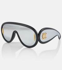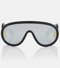 The Wave mask sunglasses have thick curved arms made into a graphic style. This piece is part of a continuing collaboration that combines Loewe's artisan legacy with the carefree spirit of Paula's Ibiza. Product Details - Frame color: black, silver - Frame material: acetate - Lens color: silver - comes with cleaning cloth - The color of the case may vary - Lens filter category 3 - Made in Italy - Item number: P00802254 Size & Fit - Lens width: 140mm-5.5" - Earpiece length: 145mm-5.7"