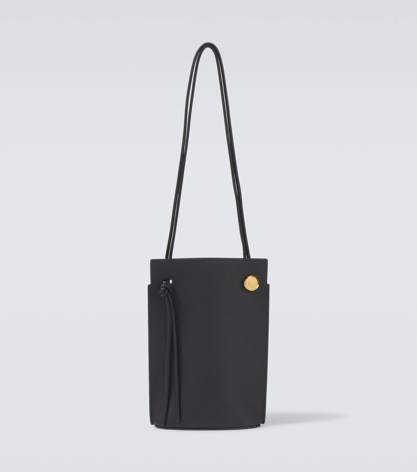 Crafted from leather, this Pebble Dice Pocket shoulder bag has an embossed logo at the bottom. All of Loewe's leather goods are handcrafted in Spain, reflecting the house's centuries-long expertise and artisanal methods. Product Details - Material: leather - Lining: leather - Made in Spain - Designer color name: Black - Item color: black - Top handle - Hardware color: gold - Item number: P01006550 Size & Fit - Height 20cm-8" - Width 15cm-6" - Max. depth 4,5cm-2" - Length of handles 53cm-21"