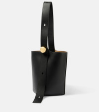 Product Details - Material: leather - Lining: unlined - Made in Spain - Designer color name: Black - Internal details: internal slot pocket - Closure: open top - Adjustable top handle - Includes: box - Item number: P00966615 Size & Fit - Height 29cm-11.5" - Max. width 26cm-10" - Depth 19,5cm-7.5" - Min. length shoulder strap 39cm-15.5" - Max. length shoulder strap 104cm-41"