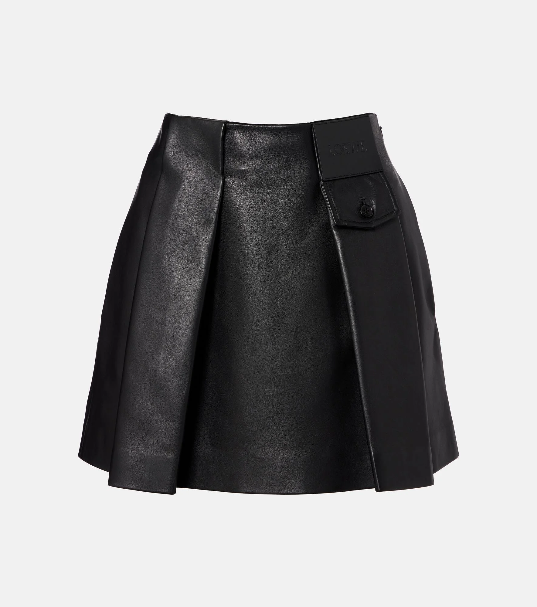 All of Loewe's leather goods are made in Spain, reflecting the house's centuries-long expertise and artisanal methods. This miniskirt features a lamb leather construction with refined pleats and a tonal logo patch. Product Details - Material: 100% lamb leather - Care instructions: specialist clean - Made in Spain - Color: black - Designer color name: Black - Details: 100% calf leather - Lining: 100% viscose - Contains non-textile parts of animal origin - Belt loops - Pockets: side slit pockets, back pocket, flap pockets - Closure: concealed zipped side - Includes: dust bag - Item number: P01118200 Size & Fit - True to size - Non-stretchy fabric - The model seen in the picture is 178cm-5'10" and wearing a size FR 34
