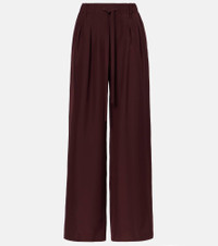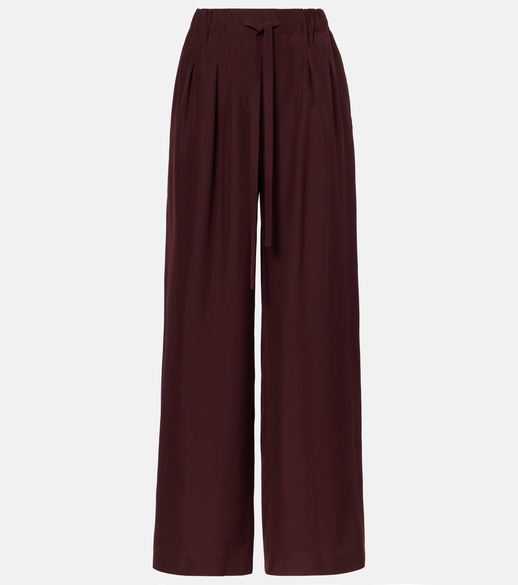 Loewe masters the balance between tradition and innovation, offering pieces that stand out for their form and style. Crafted in Italy from silk, these straight pants feature elegant front pleats and an elasticated drawstring waistband. Product Details - Material: 100% silk - Care instructions: dry clean - Made in Italy - Designer color name: Burgundy - Item color: burgundy - Embroidery: 100% polyester - Pocket lining: 100% silk - Elasticated drawstring waist - Pockets: slant pockets, back pocket - Double pleat - Item number: P01089900 Size & Fit - True to size - Elasticated waist - Adjustable at the waist - Non-stretchy fabric - Straight leg - High-waisted - The model seen in the picture is 178cm-5'10" and wearing a size XS