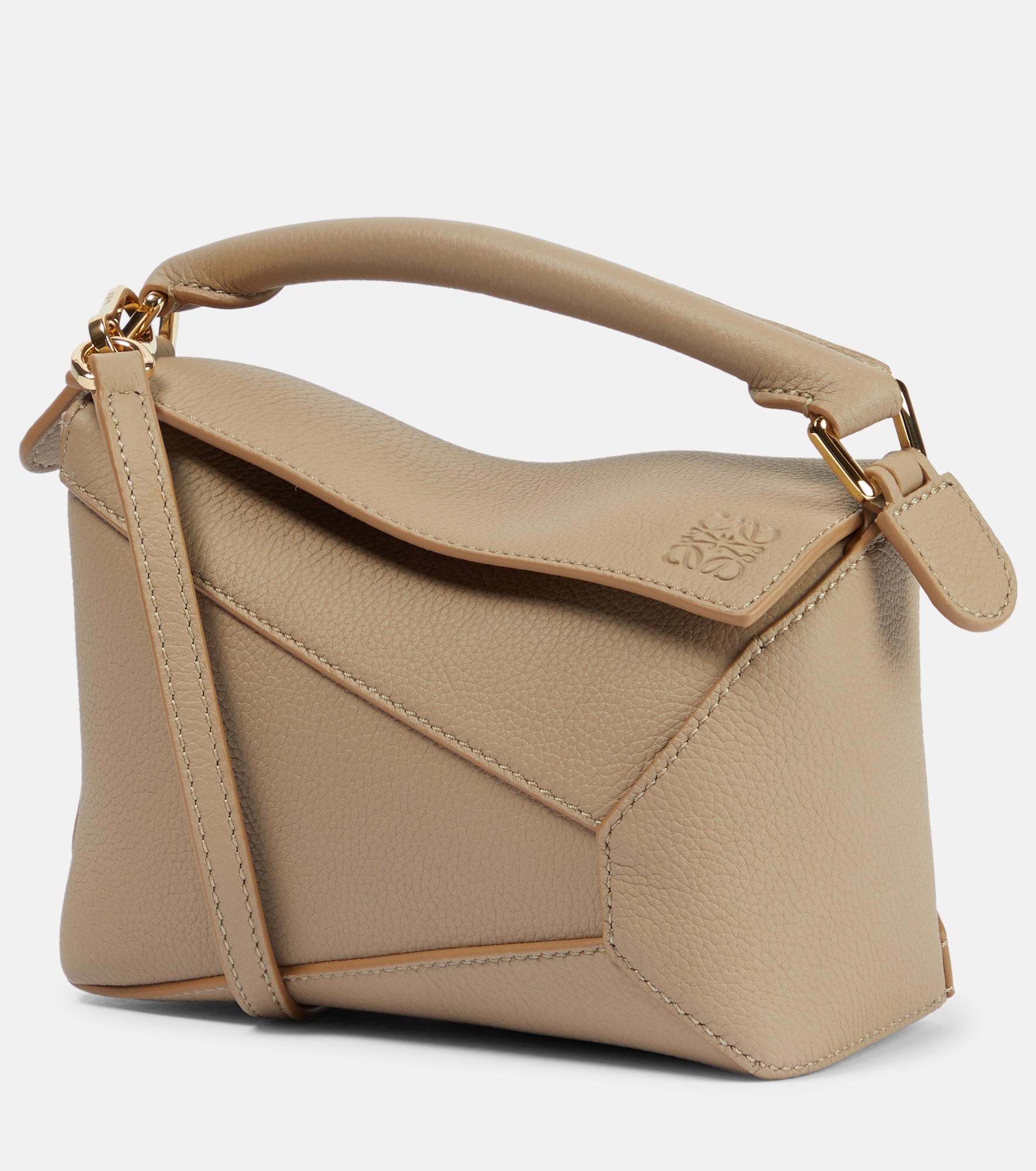 Look no further for a perfect contemporary shoulder bag than the Puzzle Edge Mini from Loewe. The brown-hued leather of this piece features an asymmetrical geometrical pattern, adding a touch of modernity to your wardrobe. Product Details - Made in Spain - Closure: zipped top - Designer color name: Sand - Detachable, adjustable shoulder strap - Internal details: fabric lining - Comes with dust bag - Material: leather - Item number: P00821381 Size & Fit - Height 12cm-4.5" - Width 17cm-6.5" - Max. depth 8cm-3" - Length of handle 13cm-5" - Min. length shoulder strap 105cm-41.5" - Max. length shoulder strap 133cm-52.5" - Suitable for small smartphones (e.g. iPhone 12 mini / Samsung Galaxy Z Flip 2)