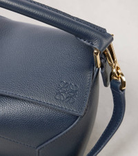Product Details - Material: leather - Lining: fabric - Made in Spain - Designer color name: Deep Navy - Top handle, Detachable, adjustable shoulder strap - Closure: zipped top - Includes: dust bag - Zipped back pocket - Item number: P01000896 Size & Fit - Max. height 18cm-7" - Max. width 25cm-10" - Depth 10cm-4" - Length of handle 30cm-12" - Min. length shoulder strap 68cm-27" - Max. length shoulder strap 90cm-35.5"
