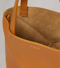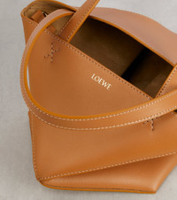 Drawing inspiration from the silhouette of Loewe’s most iconic bag, the Puzzle Fold Mini combines geometric paneling with flexibility. This versatile tote bag is carefully crafted in Spain from rich brown leather and folds completely flat into a square with one simple gesture. Carry yours over the shoulder or across the body with the detachable strap. Product Details - Made in Spain - Detachable, adjustable shoulder strap, Top handles - Designer color name: Warm Desert - Comes with dust bag - Material: leather - Internal details: leather lining - Closure: open top - Item number: P00821403 Size & Fit - Height 20cm-8" - Width 16,5cm-6.5" - Depth 9,5cm-3.5" - Length of handles 33cm-13" - Min. length shoulder strap 89cm-35" - Max. length shoulder strap 117cm-46"
