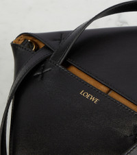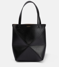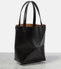 Drawing inspiration from the silhouette of Loewe’s most iconic bag, the Puzzle Fold Mini combines geometric paneling with flexibility. This versatile tote bag is carefully crafted in Spain from leather and folds completely flat into a square with one simple gesture. Carry yours over the shoulder or across the body with the detachable strap. Product Details - Detachable, adjustable shoulder strap, Top handles - Made in Italy - Designer color name: Black - Comes with dust bag - Material: leather - Internal details: suede lining - Closure: open top - Item number: P00821402 Size & Fit - Height 20cm-8" - Width 16,5cm-6.5" - Depth 9,5cm-3.5" - Length of handles 33cm-13" - Min. length shoulder strap 89cm-35" - Max. length shoulder strap 117cm-46"