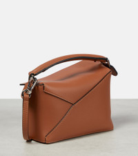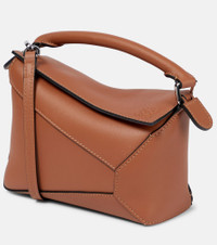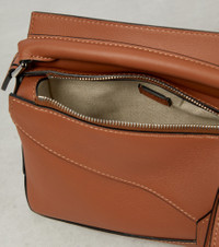 Loewe's best-known bag family, the Puzzle, welcomes a new member: the Mini shoulder bag. This Anagram-embossed brown calfskin style is made by artisans in the brand’s Madrid atelier and can be carried in five ways. Product Details - Material: calf leather - Made in Spain - Designer color name: Tan - Internal details: fabric lining - Closure: zipped top - Top handle, Detachable shoulder strap - Comes with dust bag - Item number: P00845593 Size & Fit - Height 12cm-4.5" - Width 17cm-6.5" - Depth 7,5cm-3" - Min. length shoulder strap 103cm-40.5" - Max. length shoulder strap 134cm-53"