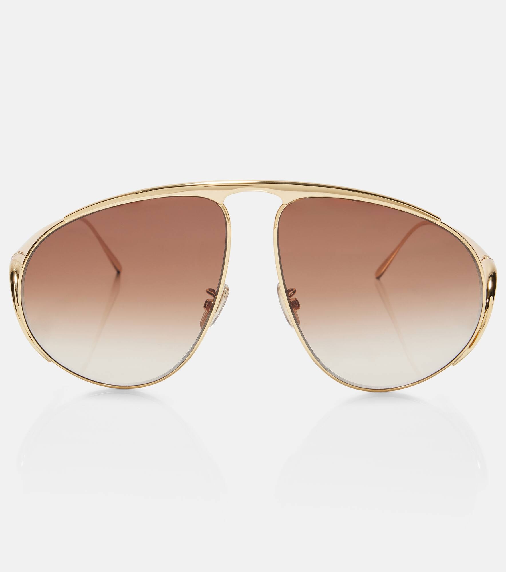 Founded in 1846 as a leathermaking company, Loewe maintains a commitment to art and craft of the utmost quality. The Signature sunglasses don an oversized aviator shape and are finished with gradient lenses. Product Details - Material: 100% metal - Care instructions: spot clean - Made in Italy - Designer color name: Shiny Gold/Gradient Brown - Item color: gold - Item number: P01054204 Size & Fit - Lens width: 60mm-2.35" - Bridge size: 12mm-0.45" - Earpiece length: 135mm-5.3"