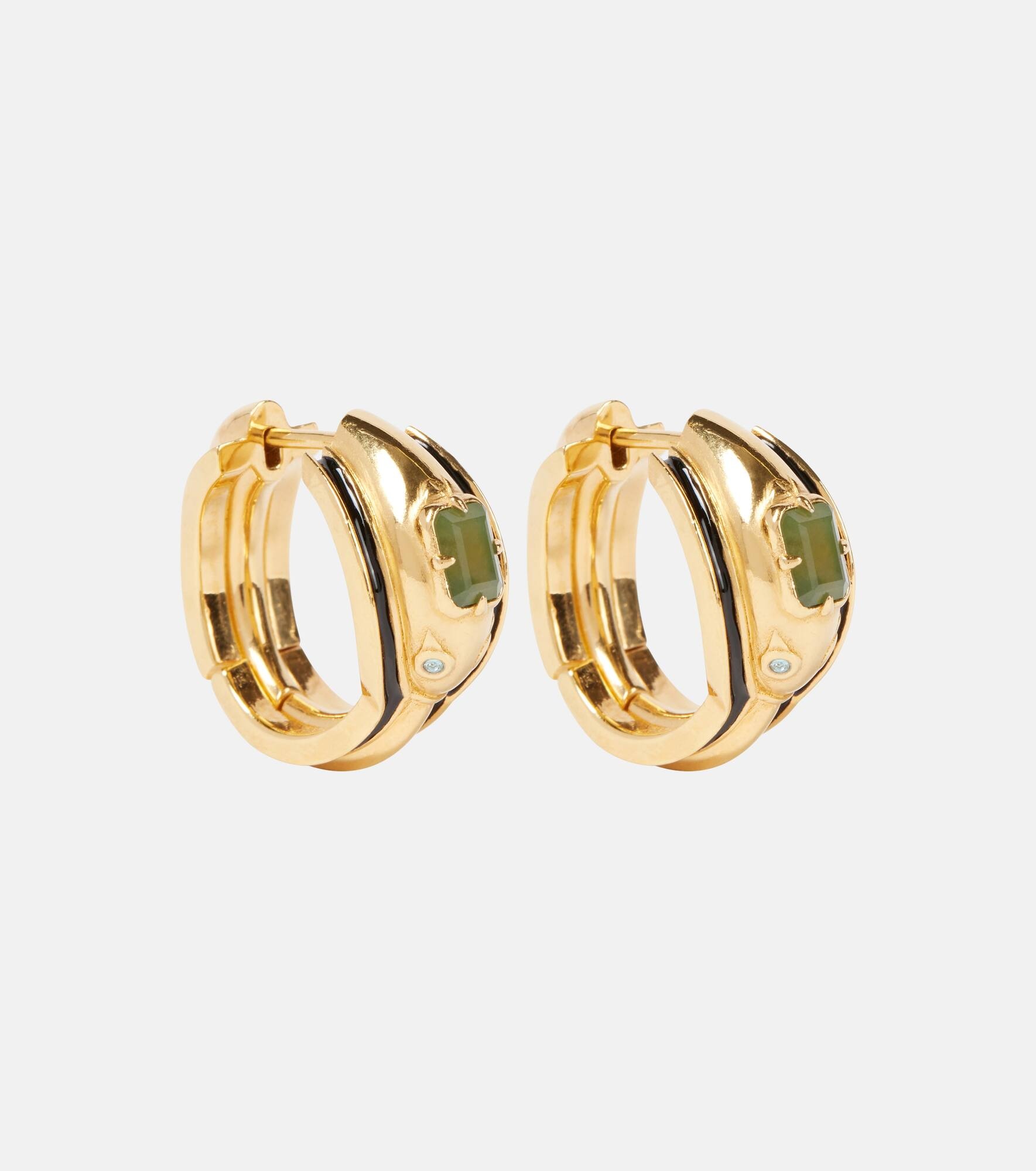 Product Details - Material: 925 sterling silver, enamel - Made in Italy - Stone I: 2 jade, baguette-cut, bezel setting - Stone II: 2 crystals, round-cut, bezel setting - Closure: safety latch - For pierced ears - Item number: P01000986 Size & Fit - Length 1,8cm-0.5" - Max. width 1cm-0.5"