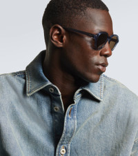 Founded in 1846 as a leathermaking company, Loewe maintains a commitment to art and craft of the utmost quality. These square sunglasses showcase a minimalist design elevated by brand lettering at the temples. Product Details - Frame material: acetate - Frame color: blue - Lens filter category 2 - Lens color: brown - Made in Italy - Includes: cleaning cloth, case - The color of the case may vary - Item number: P01056735 Size & Fit - Lens width: 50mm-1.95" - Bridge size: 15mm-0.6" - Earpiece length: 135mm-5.3"