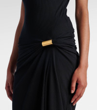 Add sophistication to everyday staples with the Tank midi dress from Loewe. Made from a lightweight ribbed-knit cotton blend, this style is defined by an asymmetric draping with a detachable engraved metal embellishment. Product Details - Material: 97% cotton, 3% elastane - Care instructions: machine wash at 30 degrees - Made in Portugal - Designer color name: Black - Item color: black - Hardware color: gold - Collar: crewneck - Hem: uneven - Item number: P01066251 Size & Fit - True to size - Fitted - Stretchy fabric - The model seen in the picture is 178cm-5'10" and wearing a size XS