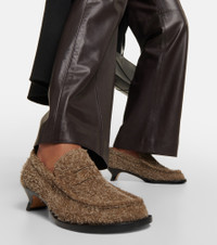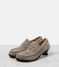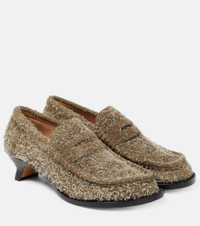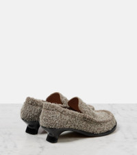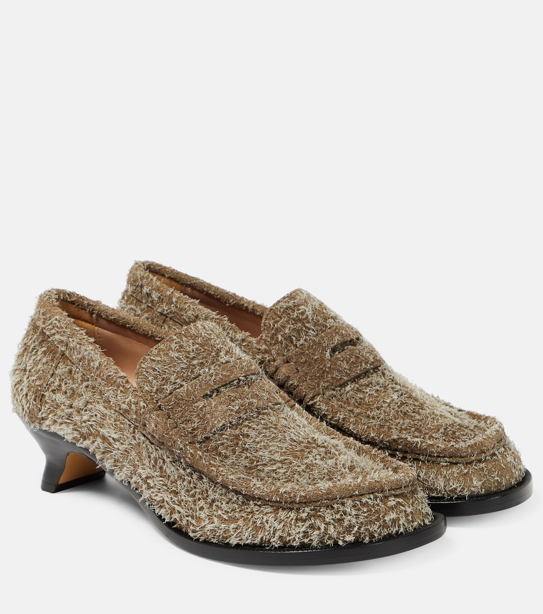These green Terra loafer pumps come with 40mm heels and have full suede construction. All of Loewe's leather goods are handcrafted in Spain, reflecting the house's centuries-long expertise and artisanal methods. Product Details - Upper: leather - Lining: leather - Sole: leather insole and sole - Toe shape: round toe - Made in Italy - Includes: shoe box - Designer color name: Khaki Green - Comes with dust bags - Item number: P00864239 Size & Fit - True to size - Half sizes please take the next size up - European sizes - 4,5cm-2" heel (size EU 38)