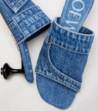 Denim-inspired, the Toy Panta mules by Loewe bring modern sophistication to everyday dressing. Set on a 45mm sculptural heel with a square open toe, this pair blends casual edge with refined design. Product Details - Upper: fabric - Lining: fabric - Sole: fabric insole, leather sole - Toe shape: square open toe - Made in Italy - Includes: shoe box, dust bags - Designer color name: Washed Denim - Item color: blue - Item number: P01065989 Size & Fit - True to size - European sizes - 4,5cm-2" heel (size EU 38)