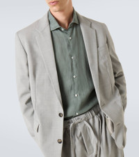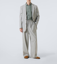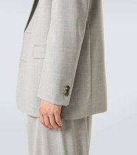 Known for its sculptural silhouettes and innovative craftsmanship, Loewe brings stunning tailoring made from high-quality materials. This wool blazer features a classic single-breasted design with a notch lapel and buttoned cuffs. Product Details - Material: 100% wool - Care instructions: dry clean - Made in Italy - Designer color name: Grey - Item color: gray - Material II: 100% polyester - Lining: 100% viscose - Contains non-textile parts of animal origin - Cuff: two buttons - Vent: single - Closure: single-breasted (two buttons) - Pockets: flap pockets, internal pockets, breast pocket - Item number: P01063159 Size & Fit - Fits large to size - we recommend trying one size smaller - Shoulder pad inserts - Designed for a loose fit - Non-stretchy fabric - Falls below the hip - Height of model is 189cm-74.5" and wears a size IT 48