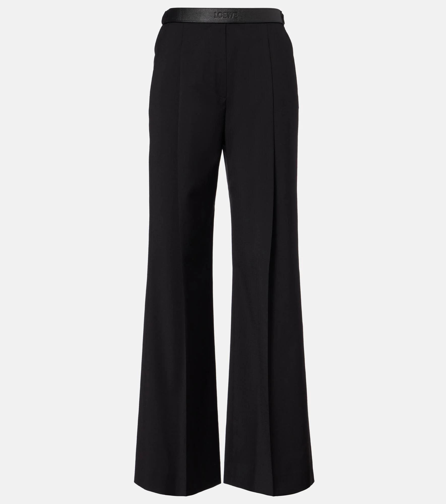 These pants from Loewe are made from a wool fabric and feature polished pleats running down the wide legs. Relaxed yet refined, they're detailed with a branded leather trim at the waist. Product Details - Material: 100% wool - Care instructions: dry clean - Made in Italy - Designer color name: Black - Item color: black - Insert: 100% calf leather - Contains non-textile parts of animal origin - Lining: 100% cotton - Closure: concealed zipped back - Pockets: slant pockets, back pocket - Item number: P01118358 Size & Fit - True to size - Elasticated waist - Non-stretchy fabric - Wide-leg - High-waisted - The model seen in the picture is 178cm-5'10" and wearing a size FR 34