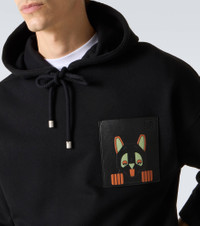 Made in Collaboration with Louis Wain, this comfortable hoodie is crafted from cotton fleece. The design features a chest patch pocket inspired by the artist's "Futurist Cats" porcelain vase series. Product Details - Material: 100% cotton - Care instructions: dry clean - Made in Portugal - Color: black - Designer color name: Black - Item color: black - Details: 100% calf leather - Trim: 45% polyester, 31% acrylic, 24% cotton - Material II: 100% cotton - Drawstring hood - Item number: P01123317 Size & Fit - True to size - Dropped shoulders - Designed for a loose fit - Slightly stretchy fabric - Falls below the hip - Height of model is 189cm-74.5" and wears a size L
