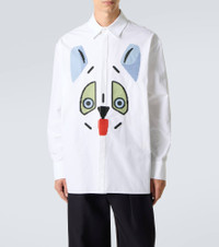 Drawing inspiration from artist Louis Wain's paintings, Loewe decorates this Oxford shirt with a vibrant animal print. The design is crafted from cotton, showcasing classic shirting details and a concealed zip on the front. Product Details - Material: 100% cotton - Care instructions: dry clean - Made in Italy - Designer color name: White - Item color: white - Embroidery: 95% polyester, 5% other fibers - Contains non-textile parts of animal origin - Closure: concealed zipped front - Collar: classic (Straight point) - Cuff: buttoned - Item number: P01123298 Size & Fit - True to size - Dropped shoulders - With pleats in the back - Oversized - Non-stretchy fabric - Falls below the hip - Height of model is 189cm-74.5" and wears a size L