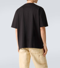 Made in Collaboration with Louis Wain, this Loewe T-shirt is crafted from comfortable cotton jersey. The design features a reworked embroidered Anagram inspired by the artist's "Futurist Cats" porcelain vase series. Product Details - Material: 100% cotton - Care instructions: machine wash at 30 degrees - Made in Portugal - Designer color name: Black - Item color: black - Embroidery: 100% polyester - Trim: 100% cotton - Item number: P01123324 Size & Fit - True to size - For a closer fit, we recommend taking one size down - Dropped shoulders - Designed for a loose fit - Slightly stretchy fabric - Falls below the hip - The model in the picture is 185cm-6'1" and wearing a size L