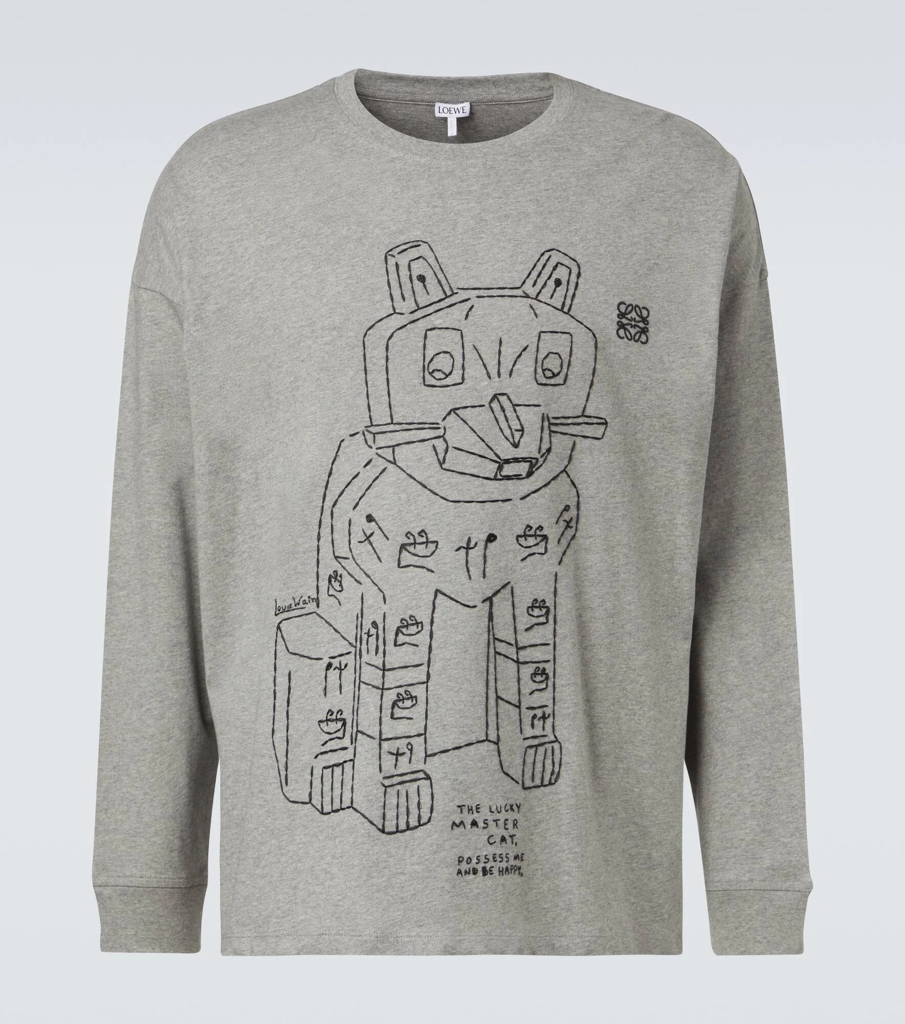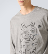 Made in Collaboration with Louis Wain, this long-sleeved T-shirt is crafted from comfortable cotton jersey. The design features embroidery inspired by the artist's "Futurist Cats" porcelain vase series. Product Details - Material: 100% cotton - Care instructions: machine wash at 30 degrees - Made in Portugal - Designer color name: Grey Melange - Item color: gray - Trim: 100% cotton - Embroidery: 100% polyester - Item number: P01123321 Size & Fit - True to size - Dropped shoulders - Designed for a loose fit - Slightly stretchy fabric - Falls below the hip - The model in the picture is 185cm-6'1" and wearing a size L