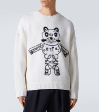Loewe maintains a commitment to art and craft of the utmost quality. Inspired by Louis Wain's Futuristic Cats porcelain vase series, this sweater is crafted from medium-weight wool and features the artist's hand-embroidered Lucky Cat and the house's signature Anagram at the front. Product Details - Material: 100% wool - Care instructions: dry clean - Made in Italy - Color: white - Designer color name: White/Black - Item color: white - Trim: 100% wool - Collar: crewneck - Cuff: ribbed - Hem: ribbed - Item number: P01123311 Size & Fit - True to size - Dropped shoulders - Designed for a loose fit - Slightly stretchy fabric - Falls below the hip - Height of model is 189cm-74.5" and wears a size L