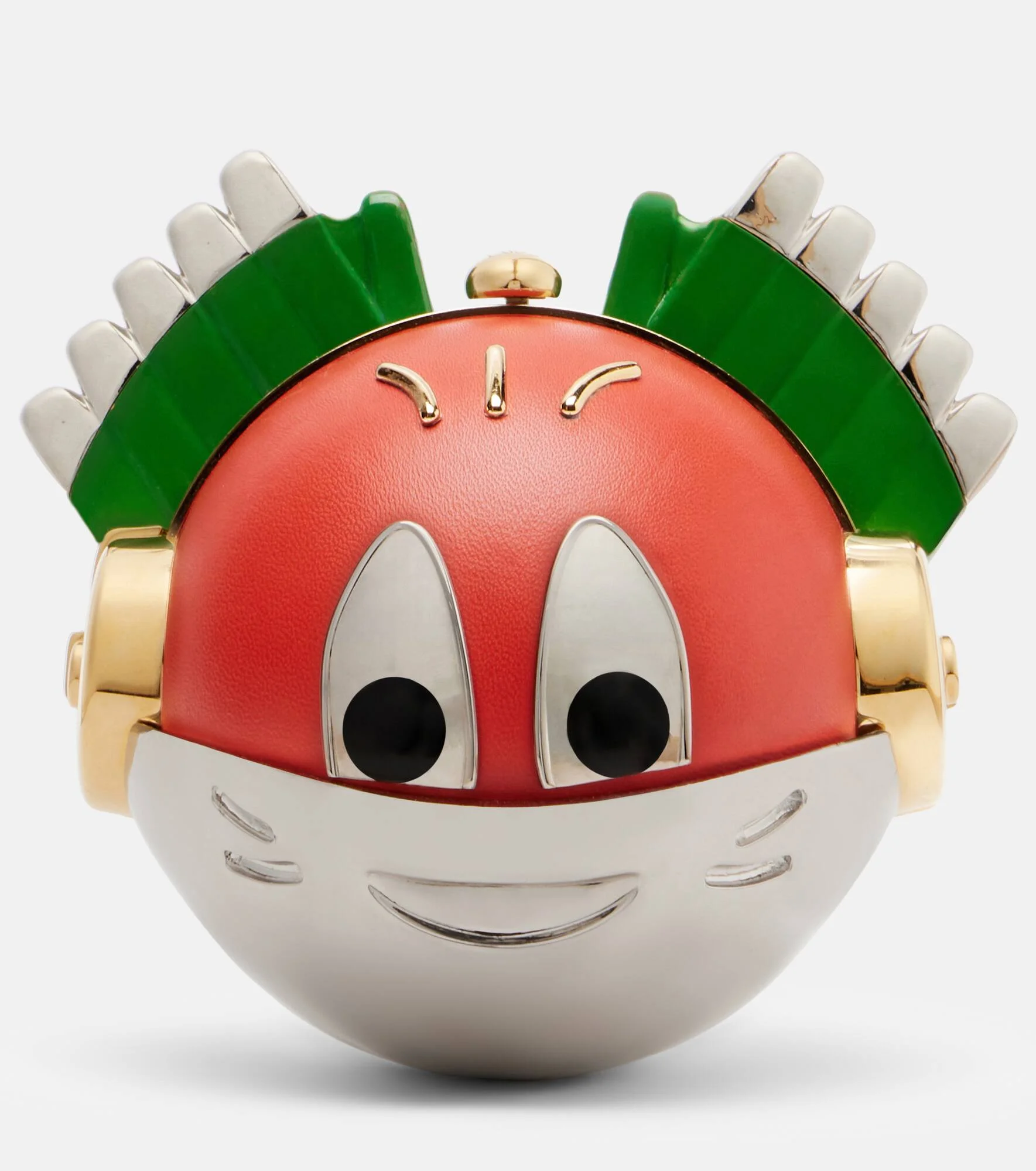 The Knight Cat clutch from Loewe showcases a playful motif inspired by the work of English artist Louis Wain. Designed with leather and metal panels, the rounded silhouette is finished with a detachable chain strap. Product Details - Material: metal - Lining: leather - Made in Spain - Color: multicoloured - Designer color name: Sunrise Orange - Item color: orange, gold, silver, multicolor - Color of chain strap: gold - Hardware color: gold, silver - Closure: push-clasp fastening - Item number: P01117845