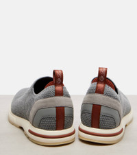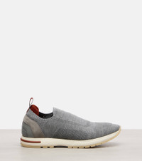 The 360 Lp Flexy Walk sneakers from Loro Piana are primed for long city strolls. Lightweight and comfortable, they're knitted from the brand's Wish® wool and have a leather detail on the heels. Product Details - Upper: wool, leather (suede) - Lining: calf leather - Sole: leather insole, rubber sole - Toe shape: almond toe - Made in Italy - Includes: shoe box, dust bags - Designer color name: Solid Flannel Gray - Item color: gray - Item number: P01083333 Size & Fit - Fits slightly large to size - we recommend trying a half size smaller - Stretchy fabric - European sizes - 2cm-1" platform (size EU 38) - 2,5cm-1" wedge heel (size EU 38)