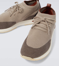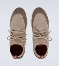 Crafted in a sock-like construction from the label's Wish® wool fabric, these grey runner sneakers from Loro Piana have ribbed trims at the ankle and sit on sleek white rubber soles. Product Details - Sole: leather insole, rubber sole - Upper: fabric - Toe shape: round toe - Closure: lace-up - Lining: fabric - Designer color name: Grey Mix - Made in Italy - Trim: fabric - Item number: P00490131 Size & Fit - True to size - Half sizes please take the next size up - Stretchy fabric - European sizes