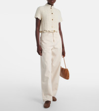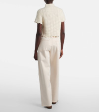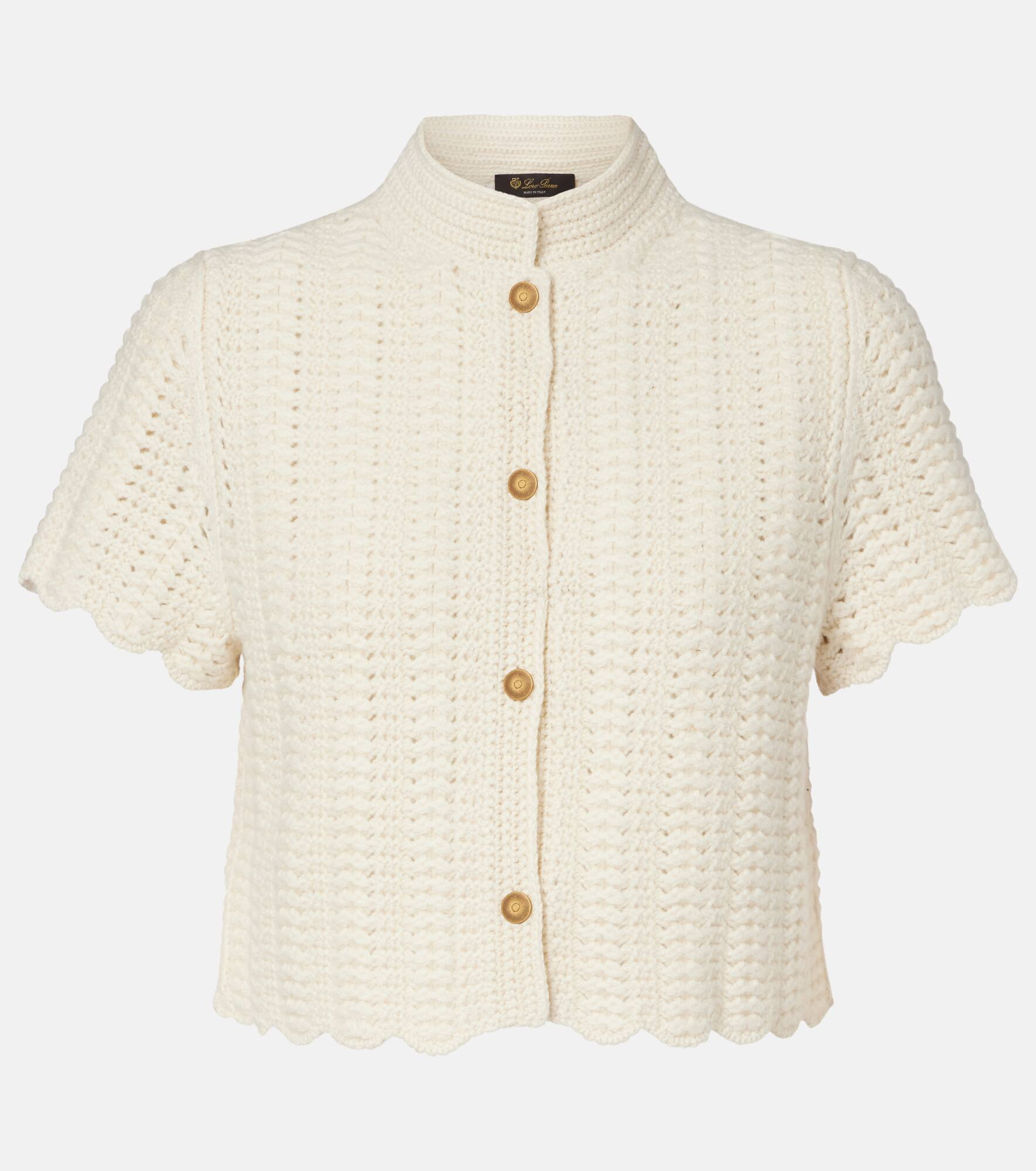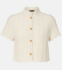 Every Loro Piana design combines the best of Italian craftsmanship with the finest raw materials. The Arola jacket is a short-sleeved style featuring scalloped edges, crafted from a soft cashmere blend. Product Details - Material: 82% cashmere, 18% abaca fiber - Care instructions: hand wash - Made in Italy - Designer color name: Nougat - Item color: beige - Details: 77% cashmere, 23% abaca fiber - Closure: buttoned front - Hardware color: antique gold - Item number: P01069576 Size & Fit - True to size - Straight fit - Slightly stretchy fabric - Cropped - The model seen in the picture is 178cm-5'10" and wearing a size XS