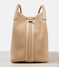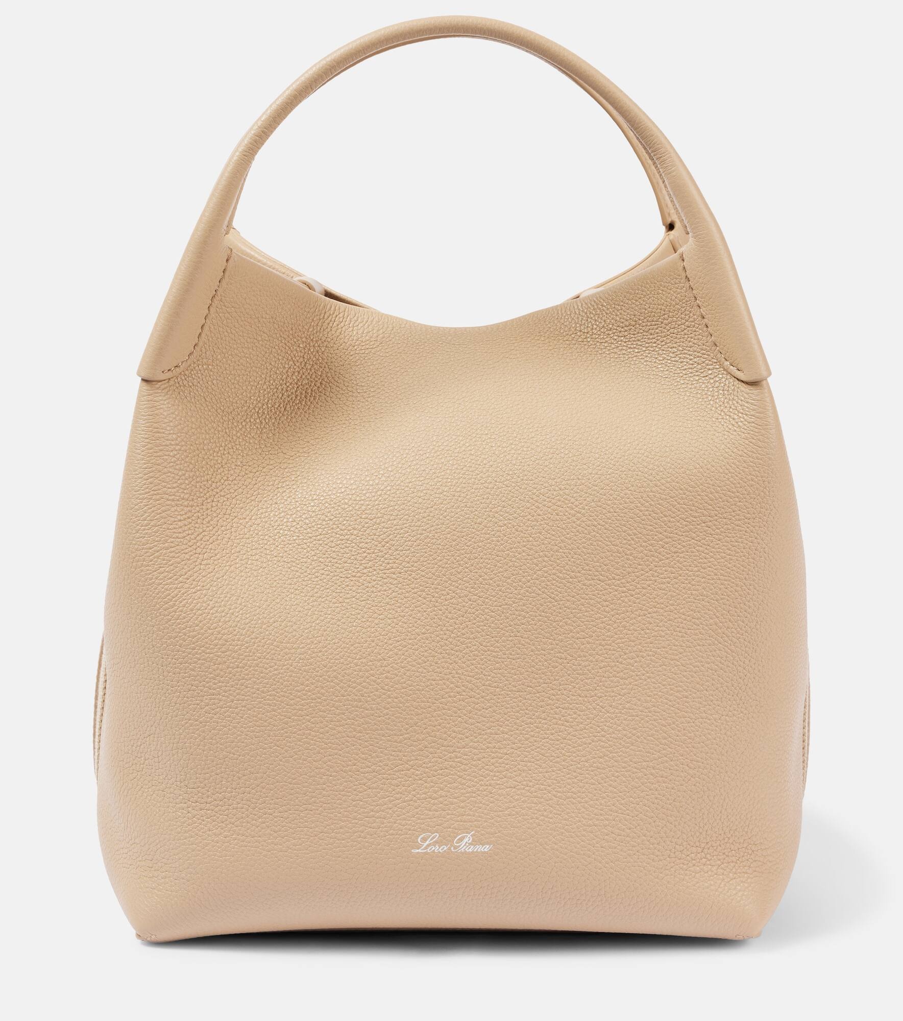 Product Details - Material: leather - Lining: unlined - Made in Italy - Designer color name: Light Mastic - Internal details: internal zipped pouch - Closure: toggle fastening - Top handles, Detachable, adjustable shoulder strap - Includes: dust bag - Item number: P00973207 Size & Fit - Height 28cm-11" - Width 24cm-9.5" - Depth 19cm-7.5" - Length of handles 27cm-10.5" - Min. length shoulder strap 77cm-30.5" - Max. length shoulder strap 86cm-34"