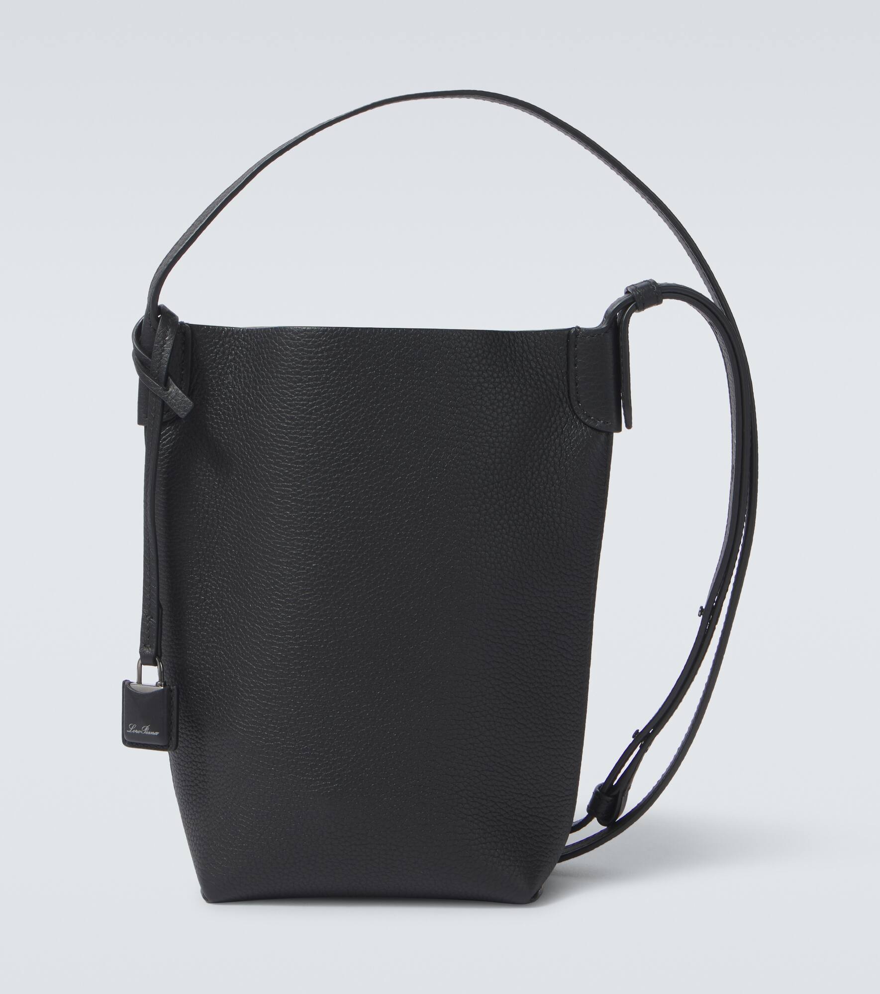 Product Details - Material: leather - Lining: unlined - Made in Italy - Designer color name: Black/ Gun Metal - Shoulder strap - Item number: P00950739 Size & Fit - Height 22cm-8.5" - Max. width 19cm-7.5" - Max. depth 6cm-2.5" - Min. length shoulder strap 102cm-40" - Max. length shoulder strap 126cm-49.5" - Suitable for large smartphones (e.g. iPhone 12 Pro Max / Samsung Galaxy A72, S21 Ultra/ Huawei P40 Pro, Mate 40 pro)