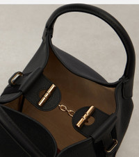 The Bale Small bucket bag by Loro Piana is crafted from grained leather and comes with the brand's logo at the base. This accessory is finished with a removable strap for crossbody wear and a detachable pouch. Product Details - Material: calf leather - Lining: suede - Made in Italy - Designer color name: Black/Sun Gold - Item color: black - Hardware color: gold - Top handles, Detachable, adjustable shoulder strap - Closure: toggle fastening - Detachable zipped pouch - Item number: P01076021 Size & Fit - Height 21cm-8.5" - Width 17cm-6.5" - Depth 17cm-6.5" - Length of handles 23cm-9" - Adjustable shoulder strap - Max. length shoulder strap 119cm-47" - Clutch height 14cm-5.5" - Clutch width 10.5cm-4"